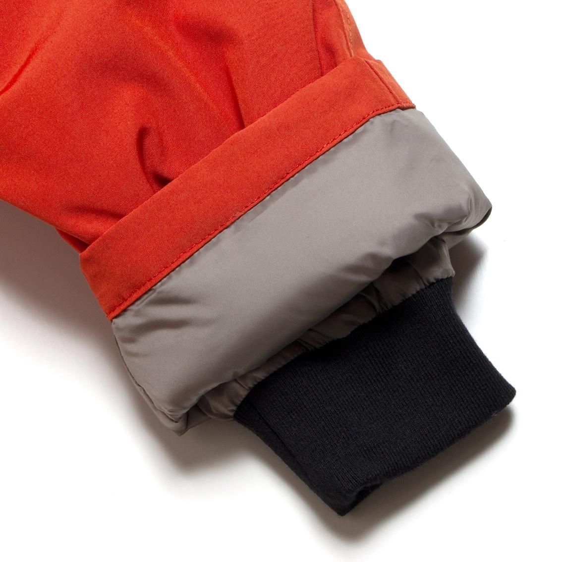 フードはジッパーで取りはずし可能となっており、フロントダブルジップ、袖口には風防のニットリブが付いています。